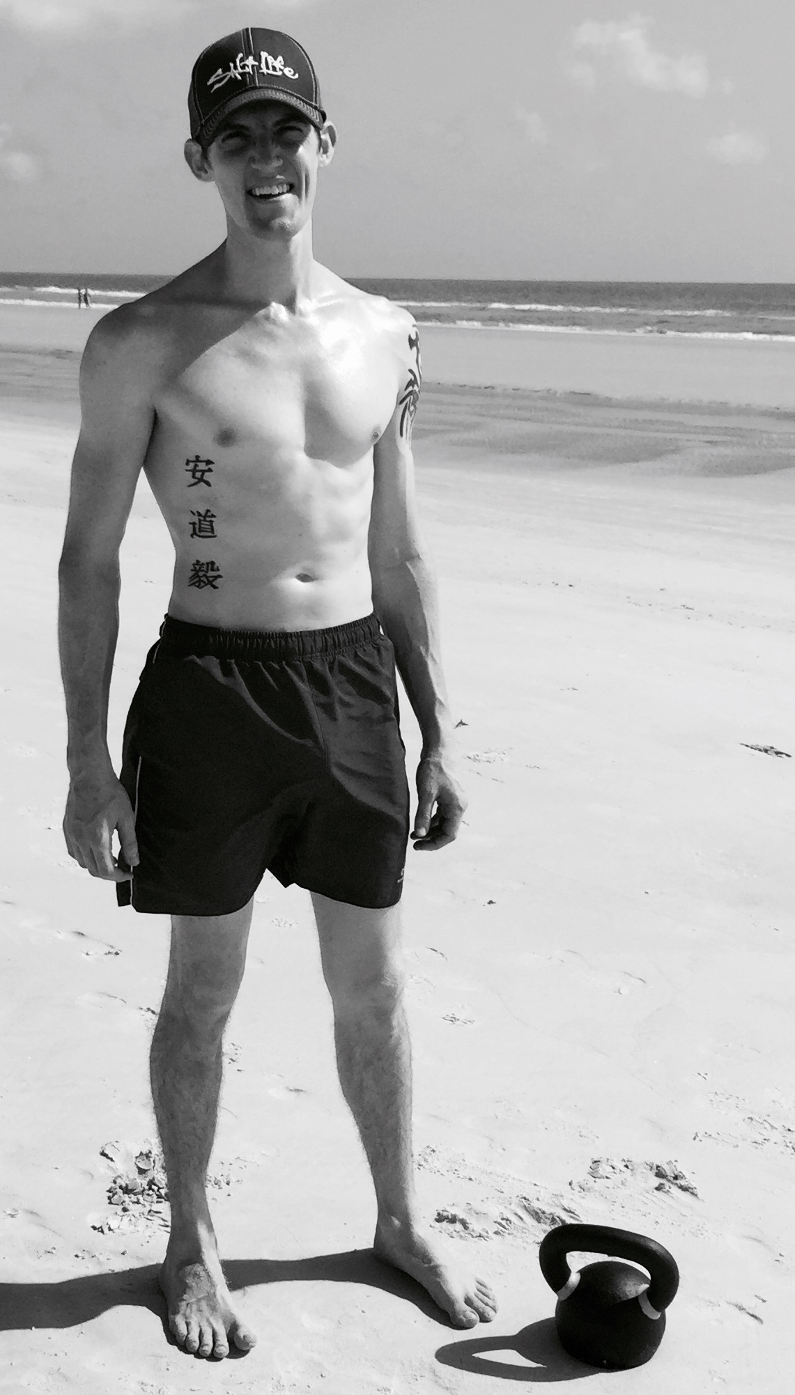 From January to May, I spent a whole buttload (badump, chhhh!) of time in the usual self-pity, anger, resentment, yada yada yada. I finally had enough, I got some stellar coaching from a few friends and mentors, I got off my sappy ass, and I created a plan to gain the weight back and become a confident, sexy-ass beast. I ran with this change in mentality and created my first goal: To return to what I weighed before the 2015 flare (145 lb.). I started with pushups and a 20-lb. kettlebell, which I affectionately named Rose Bud. I improved quickly and in June moved up to a 35-lb. kettlebell. I named it Pain. By July, I’d met my first goal. This is me in June at 140 lb., and closing in on my first goal: